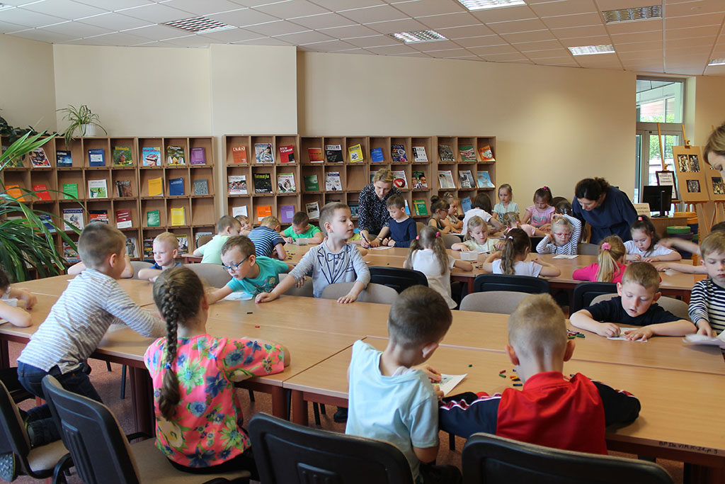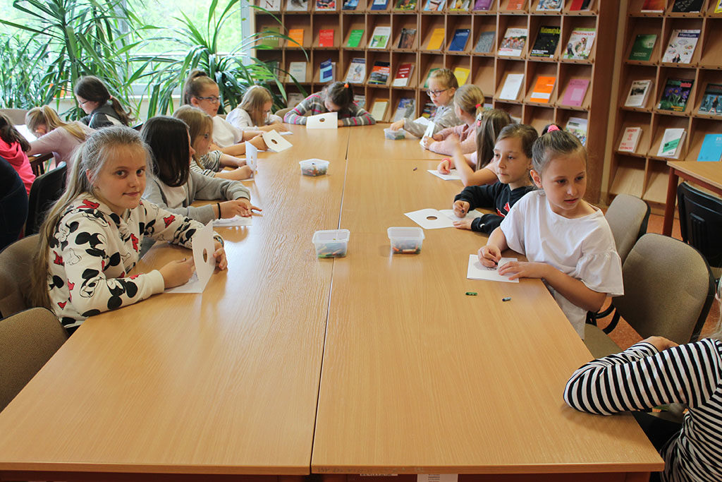 Uczniowie ze Szkoły Podstawowej nr 6 w bibliotece.